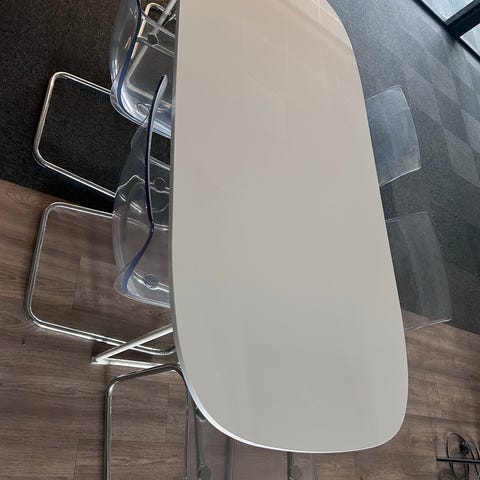 Säljer ett runt/ovalt vitt bord IKEA Bjursta. Bord, Ø115/L166, H74cm. Iläggskiva som sitter fast på bordet som man viker upp. Inkl. 4 vita klädda stolar med grått tyg. Lite klösmärken på stolstyget men går att köpa till nya överdrag då det är avtagbart och även går att maskintvätta. 700 kr för allt. Ta med bärhjälp.