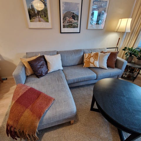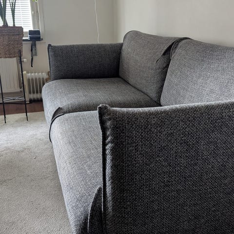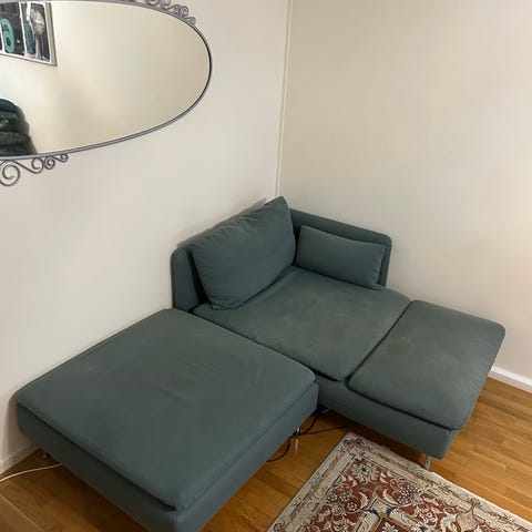 Mått: 200 cm lång, 100 cm bred, 70 cm hög(rygg & armstöd), 40 cm hög sitthöjd.