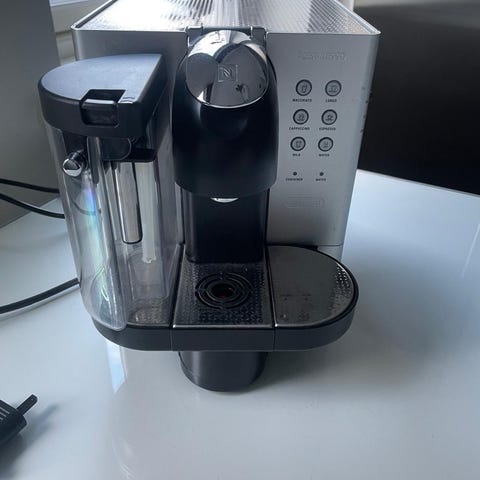 Nespresso espressomaskin med inbyggd mjölkskummare. Maskinen använder kapslar och har separat behållare för mjölk samt droppbricka och galler för koppar. Färgkombination i svart och silver. Ansluts till 230 V eluttag. Lämplig för tillredning av espresso och kaffedrycker med mjölk hemma eller på kontor.