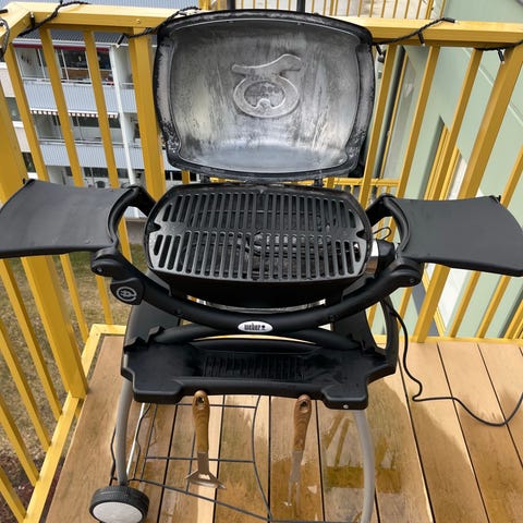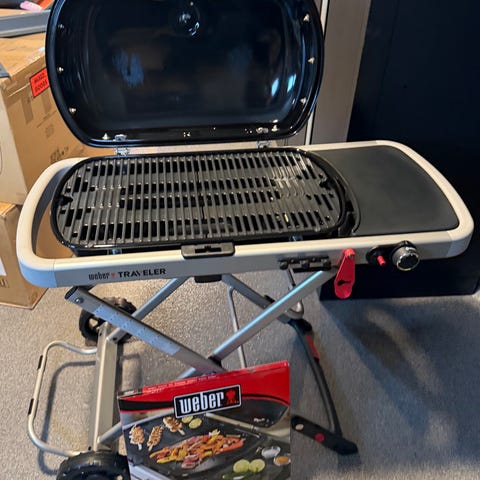En jättefin grill som går att fälla ihop. Perfekt för camping eller på balkongen. Inkl gasoltub.