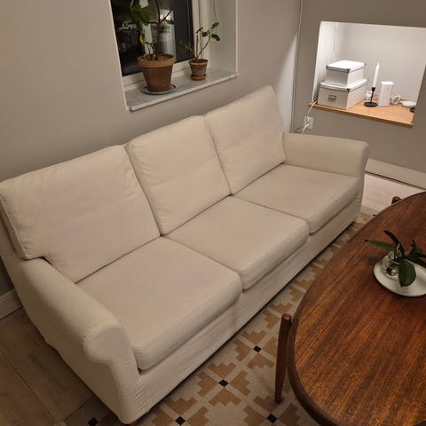 Howardsoffa från Mio säljes i befintligt skick. Avtagbar klädsel som går toppen att tvätta på låg temperatur.