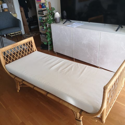 Jättefin och praktisk extrasäng som kan användas som sittpuff eller bord! Mycket lite använd!