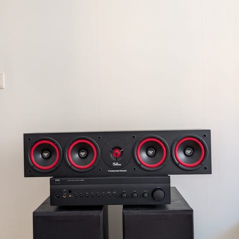 Med en väldigt hög känslighet på 95 db spelar denna center högt helt utan ansträngning. 6 st 3" mellanregister/bas ger ett stort ljud.