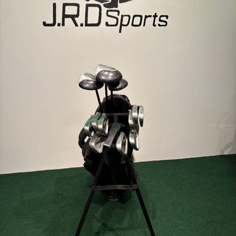 Golfklubbor med bag. Innehåller putter, Sand och Pitching-wedge, järn 9-6, hybrid 4a samt en driver från wilson.