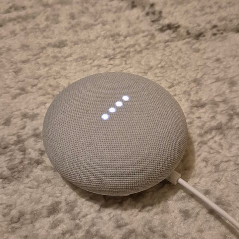 Google Home Mini smart högtalare i en ljusgrå/Krita färg. Kompakt röststyrd högtalare med inbyggd Google assistans för styrning av musik. De är en liten defekt på boxen under plasten men annars är de inget fel helt o öppnad. Om ni har några funderingar eller frågor är de bara att höra av er.