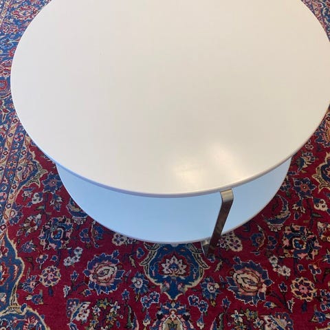 Säljer mitt kära runda soffbord i trä - två delar