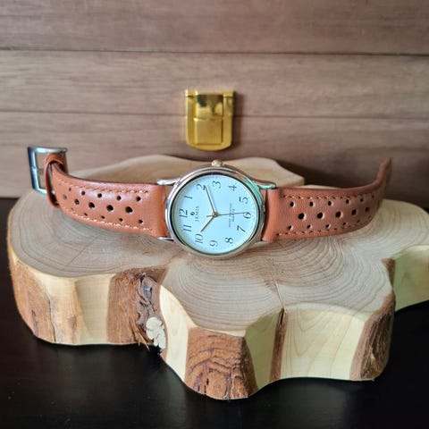 Elegant Inex Classic damklocka med ett ljust grönt läderarmband och ett guldfärgat boett. Monterade i nytt batteri 14/2 2026
