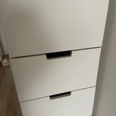 Vit byrå med 3 lådor.