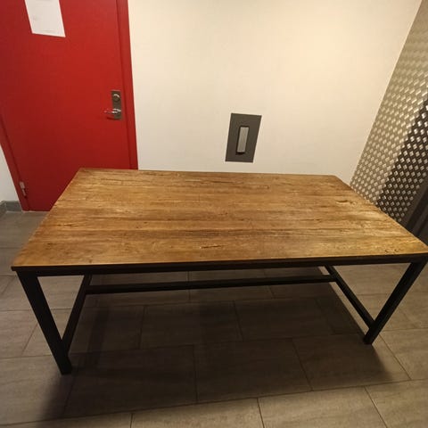 Rustikt matbord i massivt trä och metallunderrede