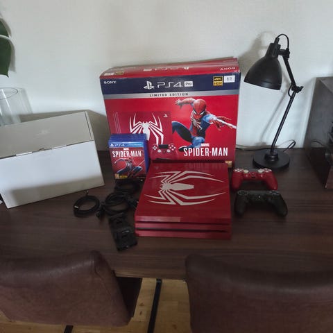 Säljer en PS4 Pro i den populära Spider-Man specialutgåvan. Konsolen är fullt fungerande och i gott skick, men har några mindre repor som inte påverkar funktionen.
