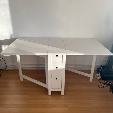 Välanvänt och har märken på bordsskivan. Bild på det största märket. Går säkert att måla i om man vill det.