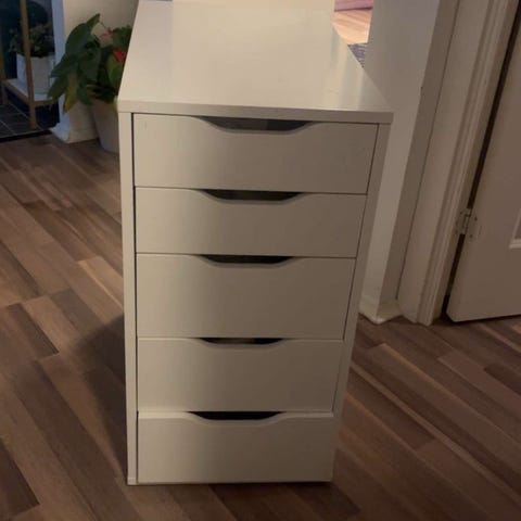 Inkl 5 st lådor + vita högblanka fronter med aluminiumram och knoppar