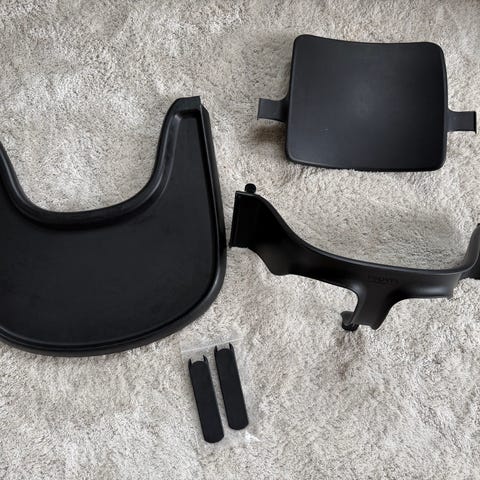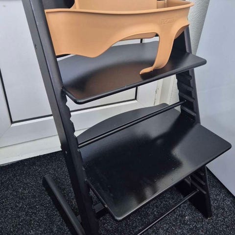 Stokke Tripp Trapp + Baby Set + Bricka – komplett (mörkbrun, knappt använd)