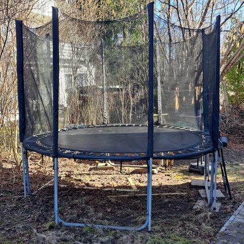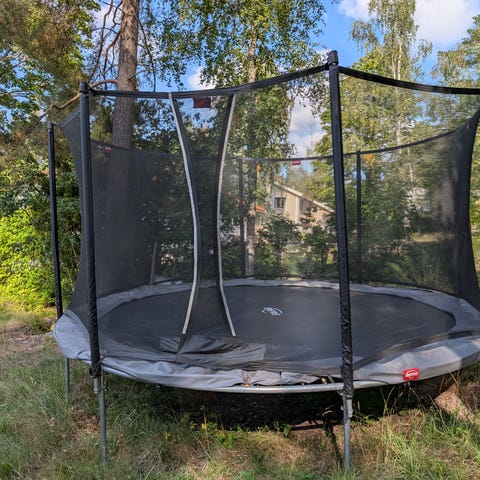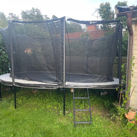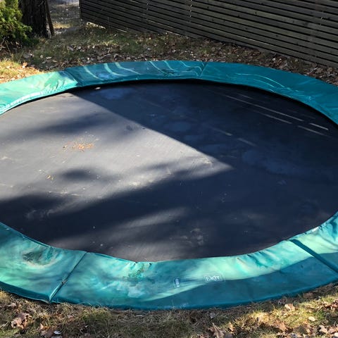 Studsmattan har vinterförvarats i garage och är nedmonterad.