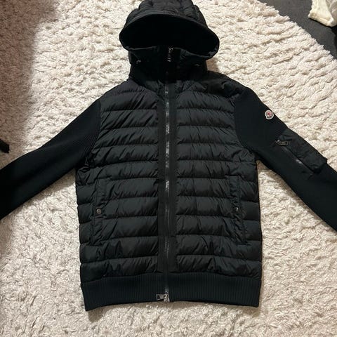 J.Lindeberg jacka för herr i storlek S. Jackan är grå med vadderad front och ryggparti i mörkare ton samt ärmar och nederdel i mjukare bomullstyg. Materialet är huvudsakligen bomull med detaljer i syntetiskt yttertyg. Modellen har dragkedja framtill och huva. Passar som vardagsjacka eller lättare ytterplagg under svalare väder.