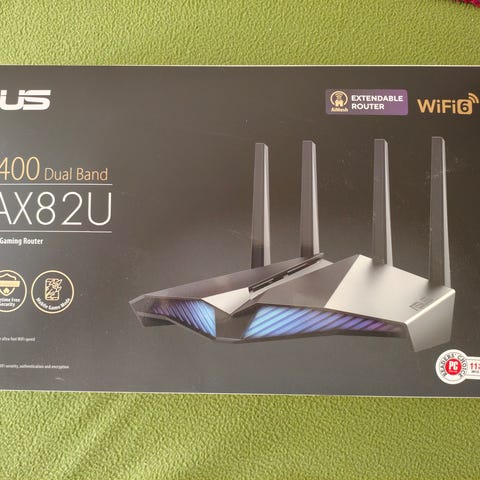 Asus RT-AX1800U router är en dual band-router med stöd för AX1800 WiFi-standard. Modellen är avsedd för trådlösa hemnätverk och har flera antenner för bättre täckning. Routern levereras i svart utförande och är anpassad för både 2,4 GHz- och 5 GHz-band. Den passar för anslutning av datorer, mobiler, surfplattor och andra nätverksenheter i hem- eller kontorsmiljö.