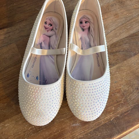 Sandaler för flicka i storlek 37. Öppen tå med röd ovandel i blankt och glittrande material samt dekorativa detaljer framtill. Justerbar rem runt ankeln och låg genomskinlig klack. Passar exempelvis till fest, högtider eller andra tillfällen där en mer uppklädd sko önskas.