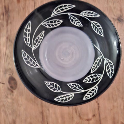 Svartvit stor skål med hand målad dekor