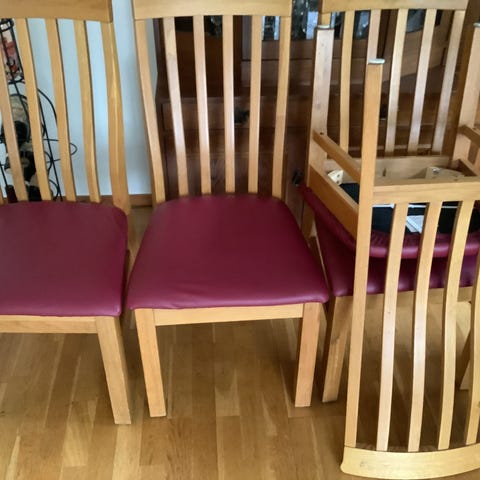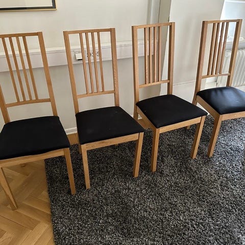 4st Norrnäs stolar i Ek. Har använts sedan 2009. I okej skick, men har såklart lite märken från åren.