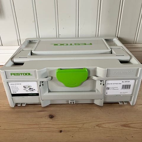 Verktygslåda med tre fack och uttagbara skiljeväggar. Lådan stängs med snäpplås och har hål för hänglås.