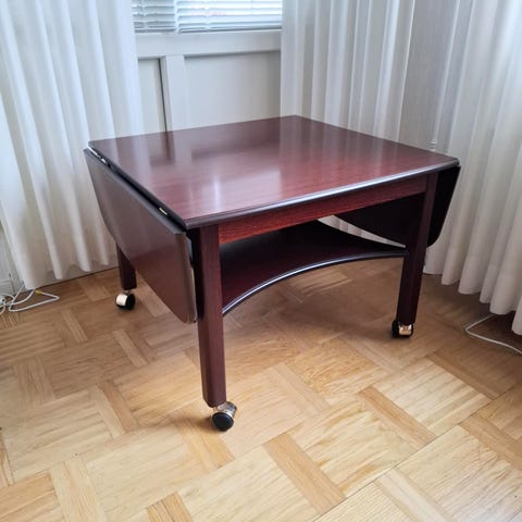 Retro Soffbordet ”General" från IKEA med en skiva i svartlackerad ekfaner förkromad stålrörsstomme på hjul 1970/1980-tal i fint skick se bilder.