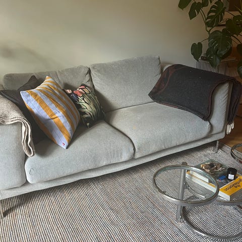 NOCKEBY soffa ger dig mjukt stöd och extra komfort perfekt för att umgås, ta en eftermiddagslur eller bara att sitta och läsa. De tjocka dynorna har en kärna av