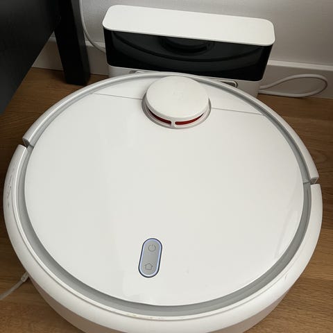 Roborock robotdammsugare i vit färg. Modellen är rund och kommer med laddstation som ansluts till vägguttag. Dammsugaren har en öppningsbar ovansida där dammbehållaren sitter lättåtkomlig för tömning. Det finns även en separat behållare som kan användas för vatten. Robotdammsugaren är avsedd för rengöring av hårda golv och mattor i hemmet och navigerar själv runt möbler och hinder. Passar för daglig städning av bostadsytor som vardagsrum, sovrum och hallar.