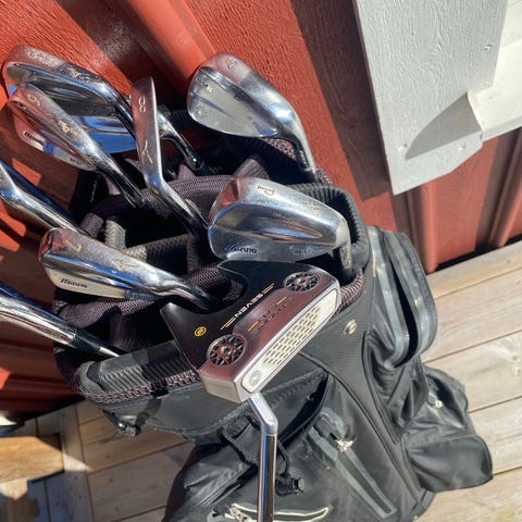 Golfset med 9 järnklubbor, Trä 3, Driver, putter samt en mizuno bärbag i bra skick