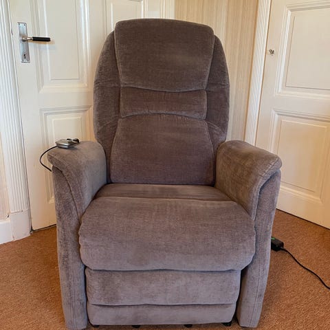 2 mycket fina el-recliner fåtöljer i grått konstskinn.