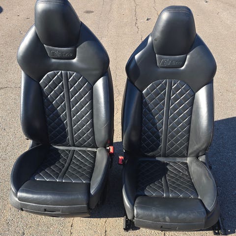 Stolarna är hela och fullt fungerande. Baksäte likaså. Dörrsidor ingår däremot inte.