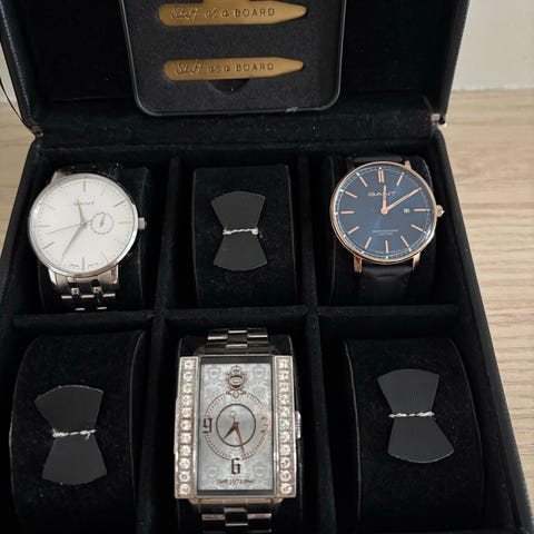 Ett elegant presentset för män från märket Moongrass. Setet innehåller en plånbok, ett par solglasögon, ett bälte och en klocka.
