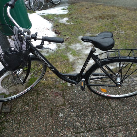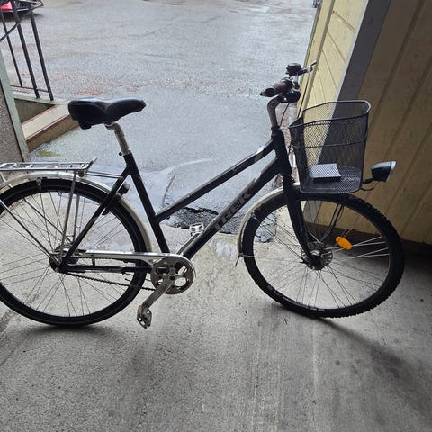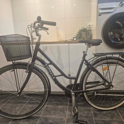 Skeppshult damcykel i svart färg. Cykeln har lågt insteg, pakethållare bak, skärmar och kedjeskydd. Utrustad med fram- och bakbelysning samt stöd. Bromsar fram och bak o 3 växlad. Lämplig som vardagscykel,