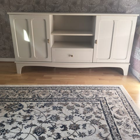 I fint skick förutom lite märken på toppskivan. En nyckel följer med.