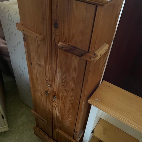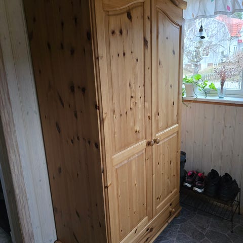 Har en rymligt skåp garderob , som behöver en ny ägare Fattas en knopp o har tejp som går att ta bort , säljes till Fynd 1500:-