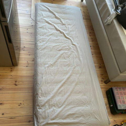 Sängen är i bra skick och har använts normalt. Madrass ingår. Enkel och stilren design som passar de flesta hem.