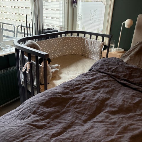 Babybay Bedside crib - ljusgrå bebissäng med madrass