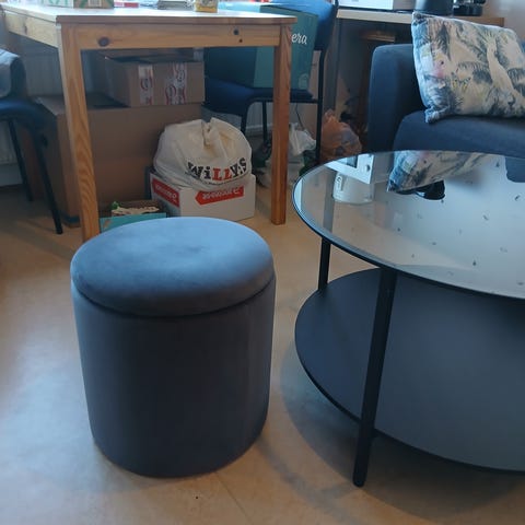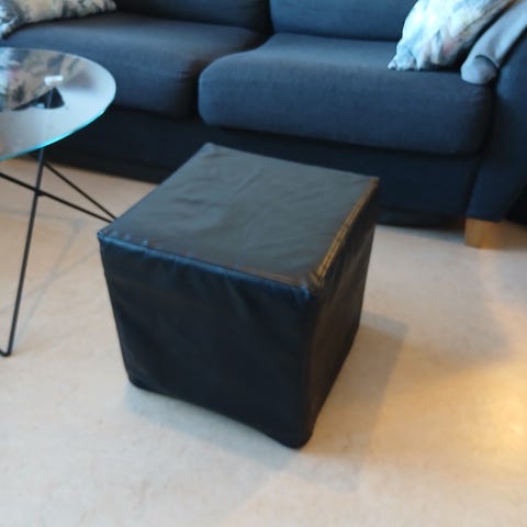 Sittpuff i ssvart sammet, med guld kant nertill.