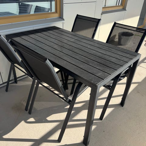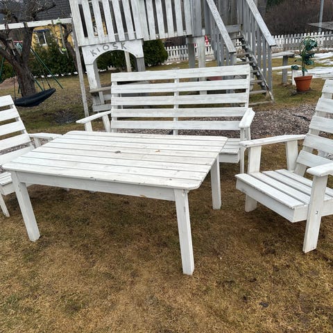 Trädgårdsset/utemöbler för barn. Fint skick förutom någon skada på bordet (se bild).