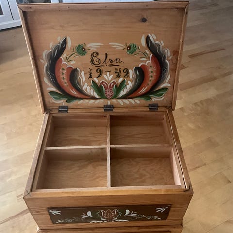 Allmoge träkista med rosmålning