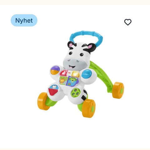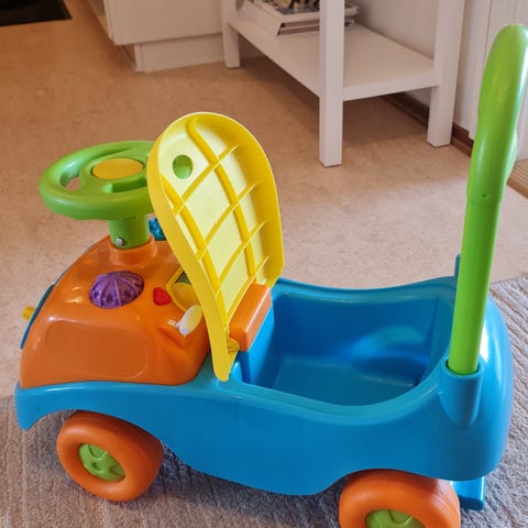 En lära-gå-bil som har en mängd funktioner och aktiviteter. Barn kan börja med att leka med och upptäcka alla de olika aktiviteterna på bilens sidor, där finns det mycket att dra i, snurra på, trycka på och allt känns olika och gör olika ljud ifrån sig. Sen kan den användas som en sparkbil när barnet kan sitta på bilen och när barnet skall lära sig gå finns ett handtag bak på bilen för detta. Sitsen kan man lyfta på för att förvara t.ex. leksaker och detta utrymme kan med fördel fyllas med något tungt om barnet behöver extra motvikt om de stödjer sig mycket på handtaget bak.