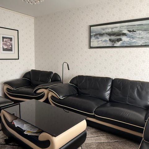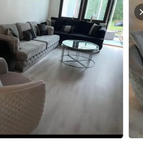 Soffgrupp 3 och 2 i grå sammet med knapptuftad rygg och lösa sittdynor, samt matchande soffbord, sidobord och tv-bänk. Soffbord, sidobord och tv-bänk har ljus marmormönstrad skiva och underrede i metall. Soffan är utformad som en vinkelsoffa med plats för flera personer. Borden och tv-bänken har raka, enkla ben i metall och skivor i marmormönstrat material. Passar som komplett möbelgrupp till vardagsrum.plus om man vill ha mattan ni får ha den oxå