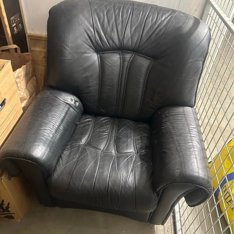 Svart fåtölj i fuskskinn. (Nypris 2299kr).