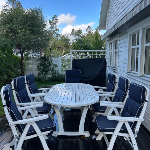 Matgrupp utomhus bord och stolar gul med kuddar