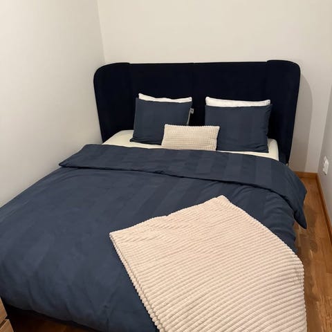 Säng mörkgrå ny 160x200 med madrass 2500kr (Det finns en del som inte är monterad. Den höjer madrassen så att sängen blir högre, och den följer med sängen)
