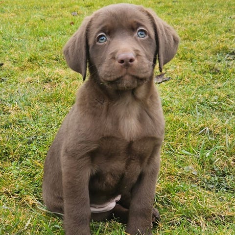 Pga sent återbud så har vi en liten kille kvar som söker sitt hem. Han är chokladbrun labrador. Som vi har kallat Rolf.