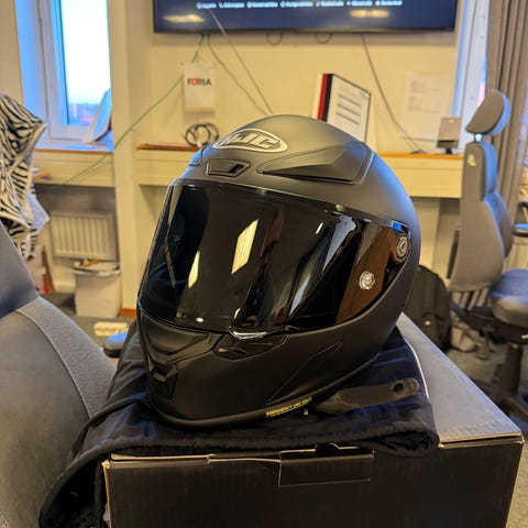 Hjälmen är endast uppackad för kontroll och fotografering, aldrig använd eller provkörd. Levereras i originalkartong med allt som ingick från början, inklusive ett extra smoke visir.