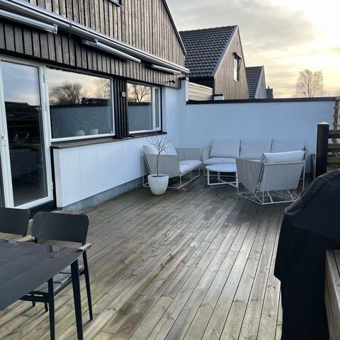 Inglasat uterum med skjutdörrar i aluminium och glas