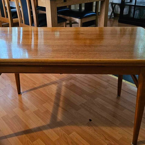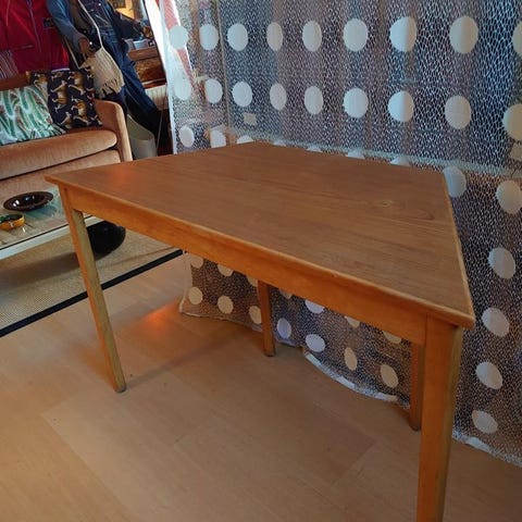 En klassisk Perstorps-platta bord från femtiotalet med stora variationsmöjligheter till yta. Perstorp börjar efter kriget med en ny sorts yta som håller mot repor och värme och utgjorde tillsammans med intelligent bordskonstruktion en klassiker som håller än idag.