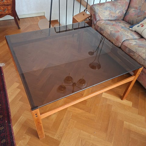 Stilrent soffbord i klassisk skandinavisk 70-talsdesign. Blev för stort för kontoret.