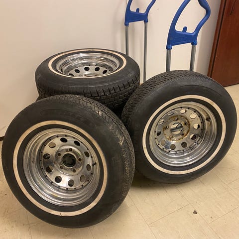 Tanken var att jag skulle ha dom till min dodge ram men insåg ganska snabbt att det blev för brett tyvärr, så nu säljs dom, fälgarna finns utanför Mariestad